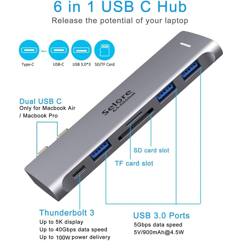 - Aluminum Design: SELORE macbook air adapter is slim with a sleek anodized aluminium body provides better heat dissipation;If you have any problems about this macbook air dongle, please feel free to let us know, we will help you solve it.(❤Doesn't work with a Macbook Pro Air laptop case, and for a stable connection, do not use this macbook adapter with high power consumption devices, It supports one hard drive max and does not support Apple USB Super Drive.)