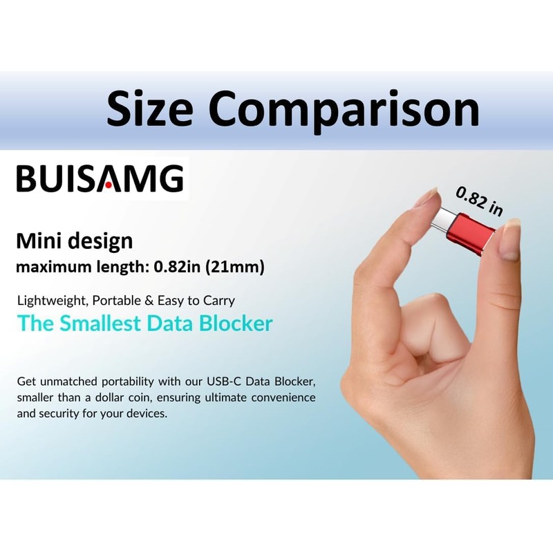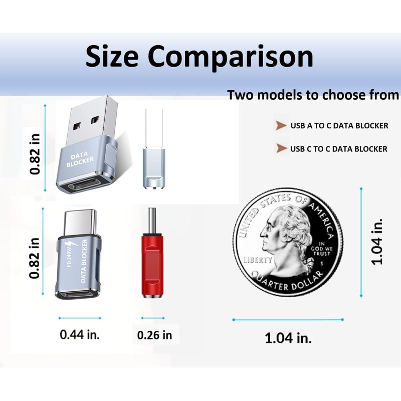 - 【Compact and Portable】Our usb data blocker is small and lightweight. You can slip it into your pocket, bag or keychain and easily take it anywhere. Perfect for people on the go or those who use public charging stations at airports, hotels, etc.