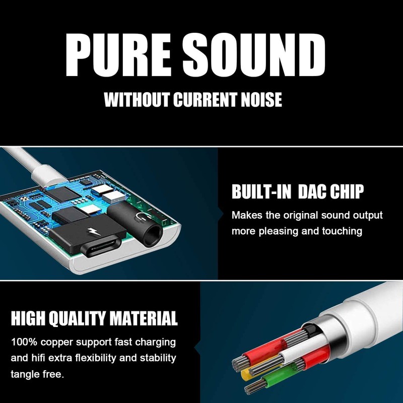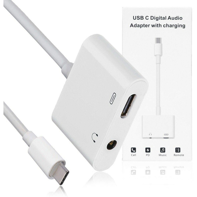 USB C Digital Audio Adapter, Headphone Adapter Earphone 3.5mm Jack Port Splitter, Support PD Charging, Call, Music, Remote Control, White