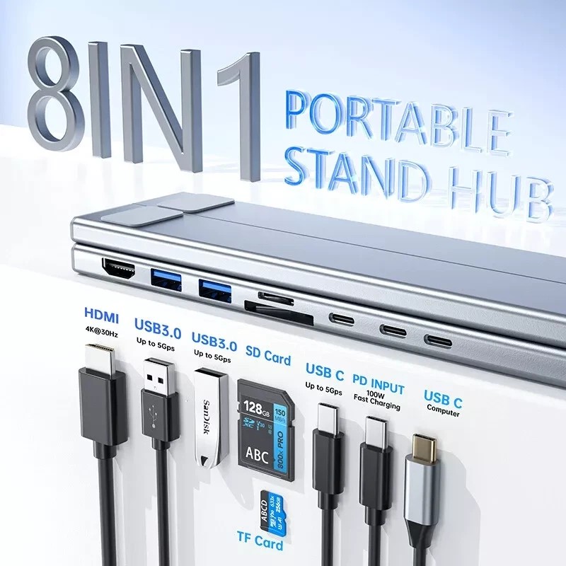 USB C Laptop Docking Station Stand, USB C Dock Tablet Stand, 8 in 1 USB C Hub...