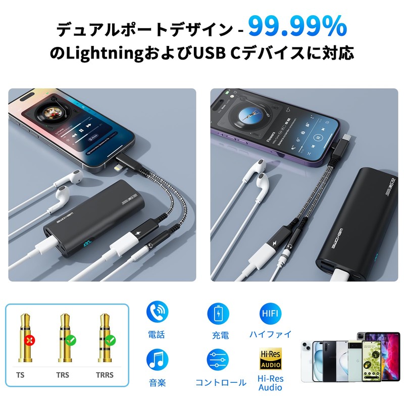 usb c+lightning to 3.55mm audio adapter