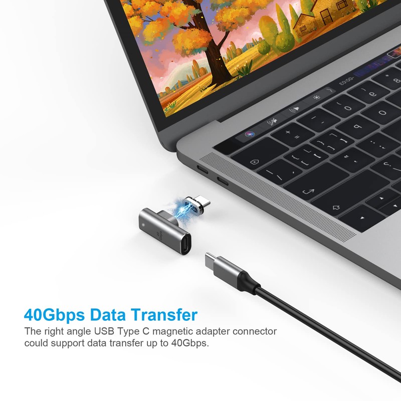 - 40GBPS DATA TRANSFER & 4K VIDEO- The USB Type C magnetic adapter connector90 degree does not only charge your USB-C devices but also supports data transfer up to 40Gbps and 4K@60Hz video output.