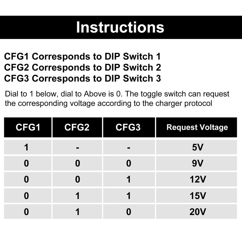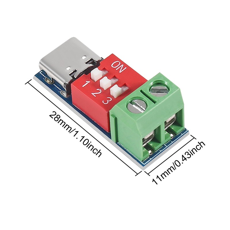 Input voltage: support 4V to 22VOutput voltage: up to 20VInterface: support USB Type-C PDPower: up to 100WProduct size: 11 * 25.7mmInstructions: