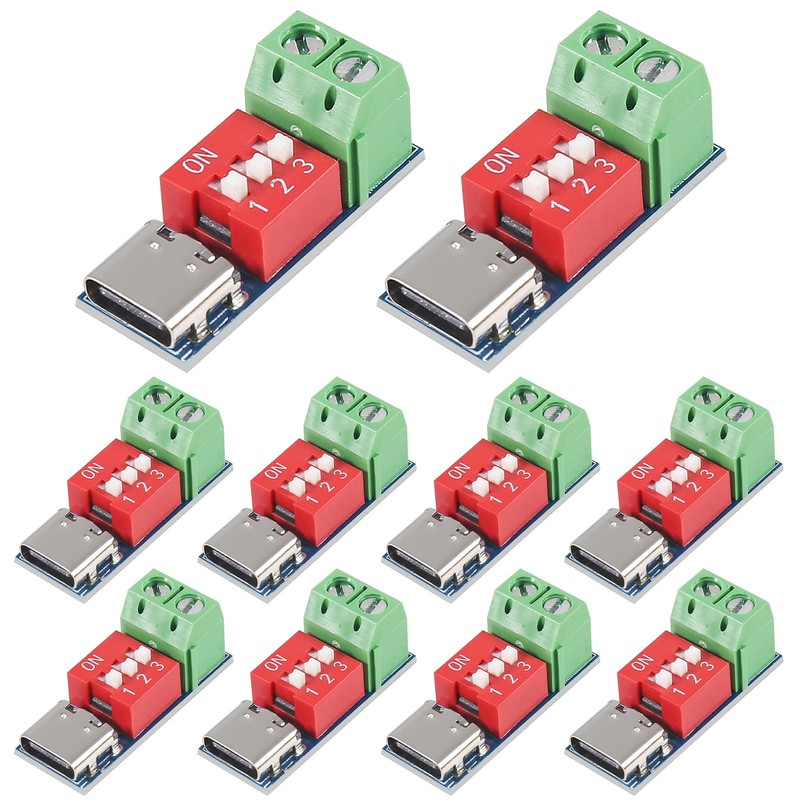 USB-C PD Trigger Board Module PD/QC Decoy Board Fast Charge USB Type-c to 5V9V12V20V High Speed Charger Power Delivery Boost Module (10pcs)