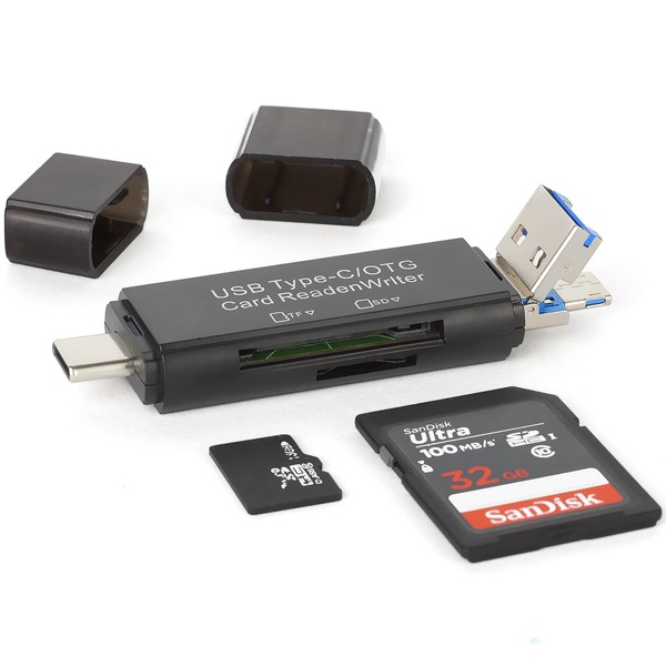 - 【Compact and Portable】 - USB sd card reader body is lightweight , strong heat dissipation and durable. Both ends are safety caps design. Anti falling and dustproof , protect the USB A , Micro USB , USB-C interfaces from damage. sd card reader for android phone, pc. Good travel partner!