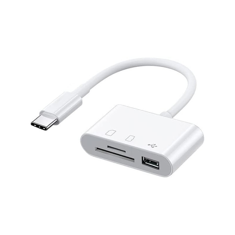 3 In1 USB SD TF USB card reader, portable, portable and easily transfer the photos and videos to your phone or other USB-C device.