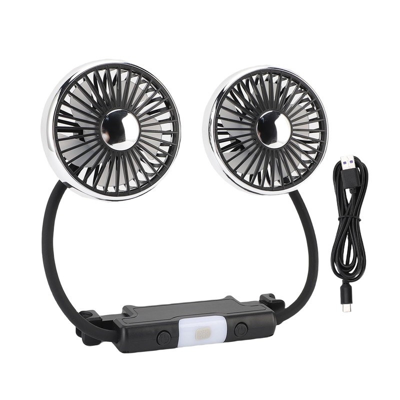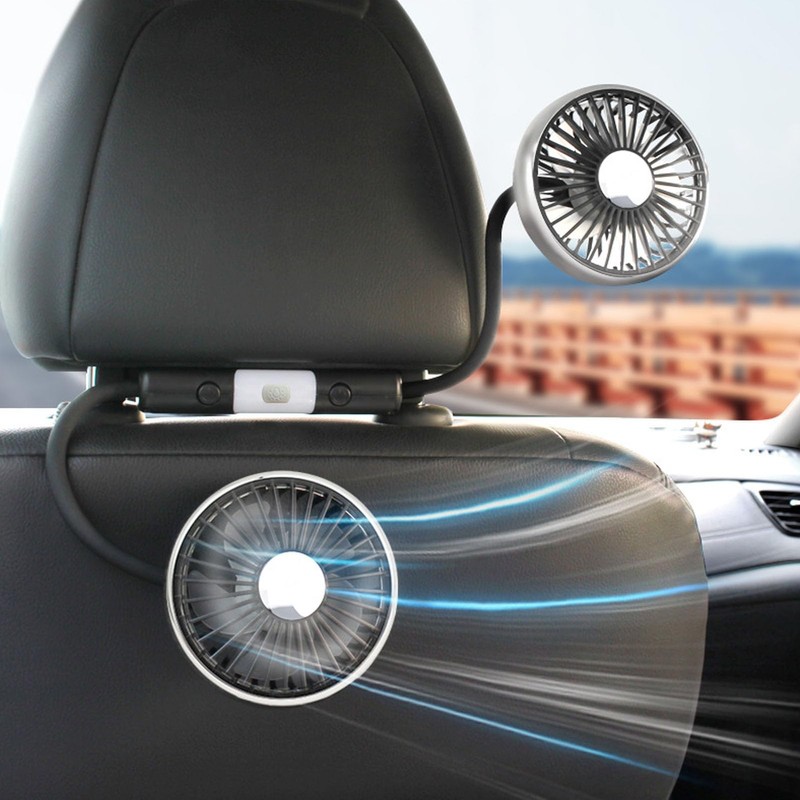 USB Car Fan, Powerful 3 Speed Dual Head Gooseneck Car Cooling Fan, 360° Rotatable, DC 5V Snap in Car Seat Headrest Fan for Vehicle Sedan Truck SUV RV