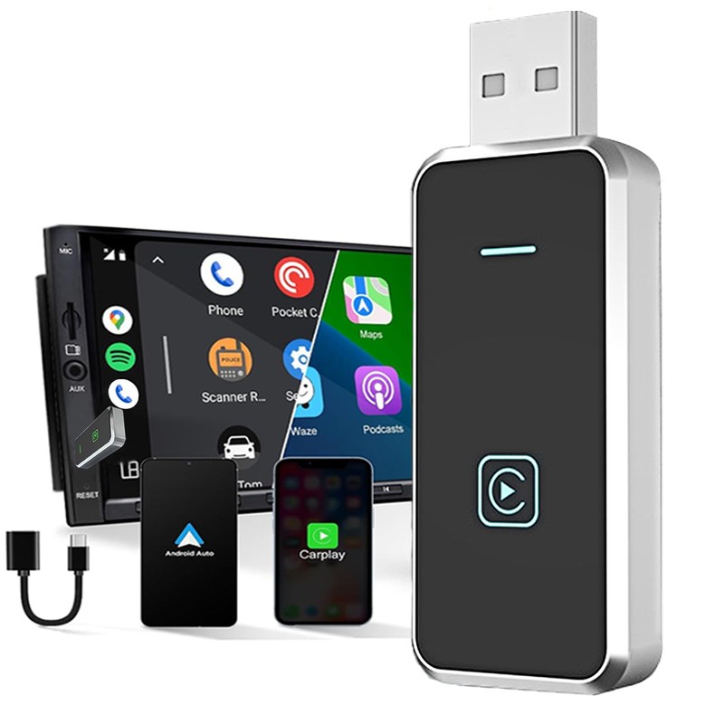 - Mini and Portable: A sleek and lightweight wireless A-pple/android CarPlay adapter designed for effortless portability. Wireless CarPlay adapter phone compact form factor ensures it will not clutter your car interior. Say goodbye to messy wires and hello to a cleaner, more organized car interior