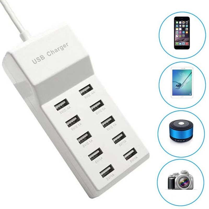 USB Charger Multiple, 10 Way USB Fast Charging Station Hub Multiple Multi USB Port Charger Adapter