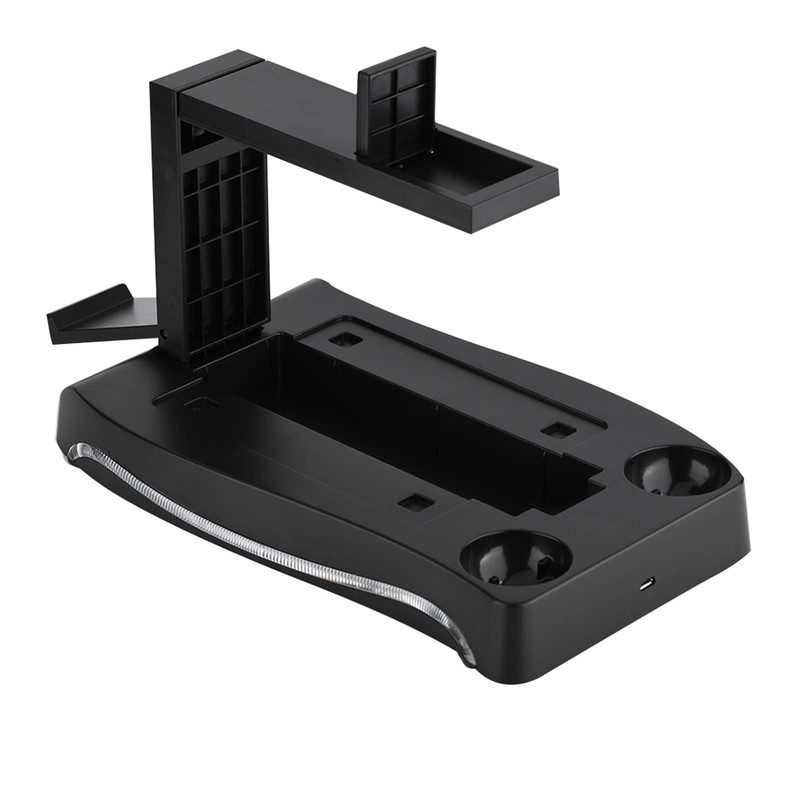 To charge your controllers, simply plug the USB cable into your for or any USB charging port and dock your controllers into the stand. For controller charging station is designed to save space and look sleek while doing it. It's capable of charging two controllers at the same time.