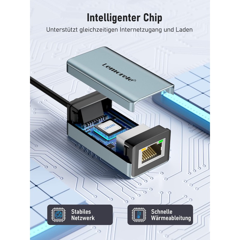 USB Ethernet Adapter, Lemorele USB 3.0 to RJ45 Gigabit Ethernet LAN Network Adapter Aluminium Housing, LAN Adapter Compatible PC, Laptop MacBook, Surface Pro, Switch, Windows 10/8.1/8/7, Linux, Mac OS