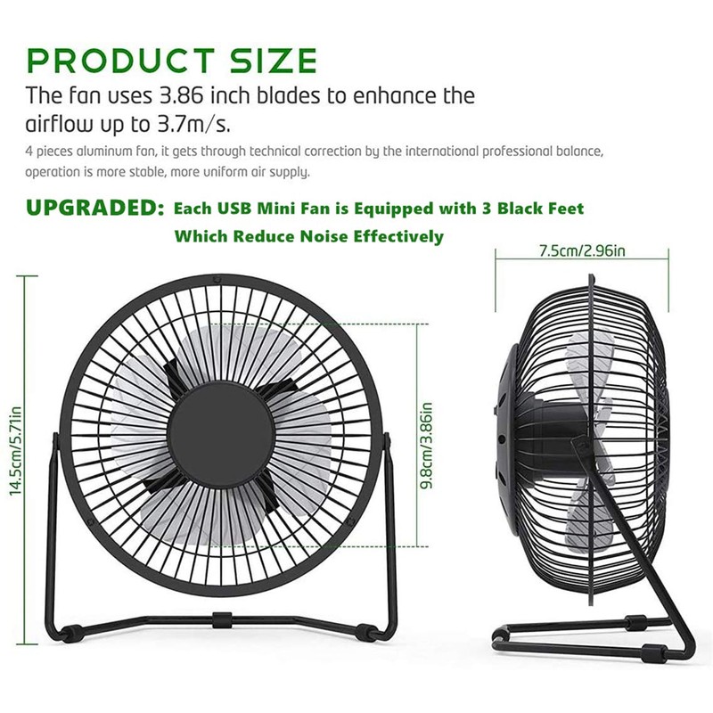 - 【ULTRA-QUIET DESIGN】With low decibel and stable operation, the mini fan with 4 blades made unique cutting process, and 3 balck feet, which makes it ultra-quiet fan, and perfect for the office, home, dorm, study, library, and games room.