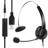 USB Headset with Microphone, 3.5mm Jack Computer Headphone 2 in 1, Computer Headset PC Headphone with Noise Cancelling Audio Control, Single Ear Headset for Skype Gaming Call Center Office
