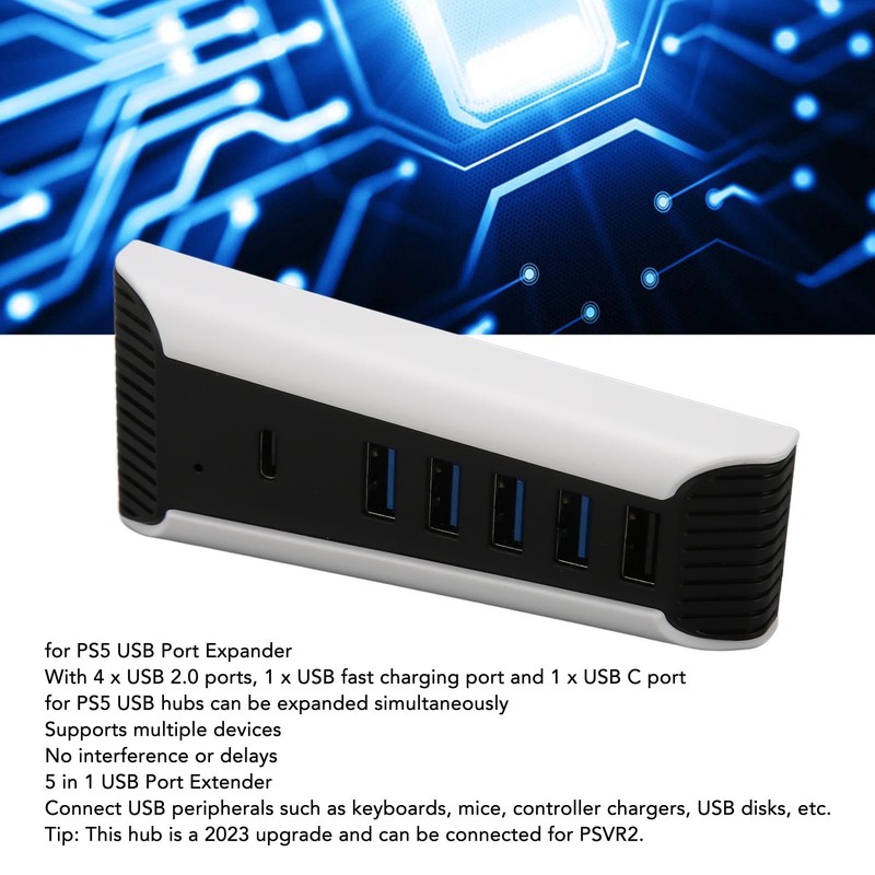 - USB HIGH SPEED EXPANSION HUB: Connect USB peripherals such as keyboards, mice, controller chargers, USB disks, etc. (Tip: This hub is a 2023 upgraded model and can connect for PSVR2).