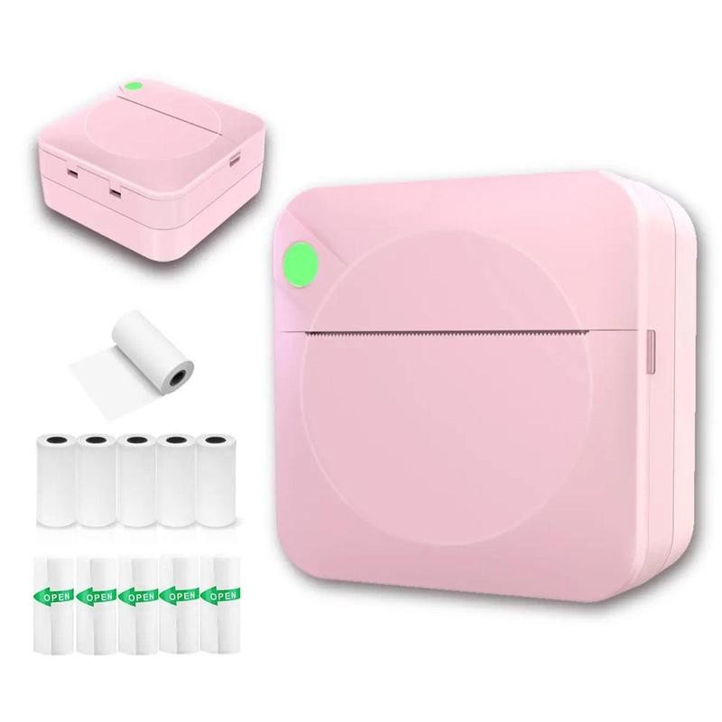 USB Portable Mini Photo Printer, 1 Set Mobile Phone Photo Printing Machine, Wireless Printer with 11 Rolls Thermal Paper for Home Office School:_Black_1 set