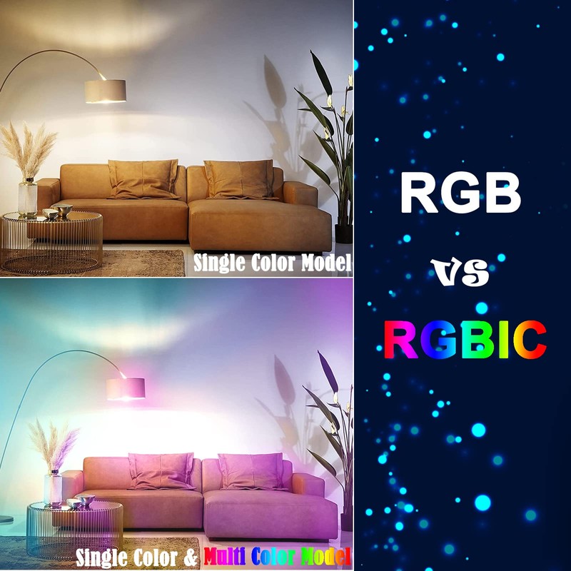 - 【Fantastic Lighting Effect】Compare to RGB‘s single color model,RGBIC not only achieved segmented individually color control,but could present multiful colors at the momment to create chasing, dancing, twinkling cool neon effect, give you an amazing visual experience.