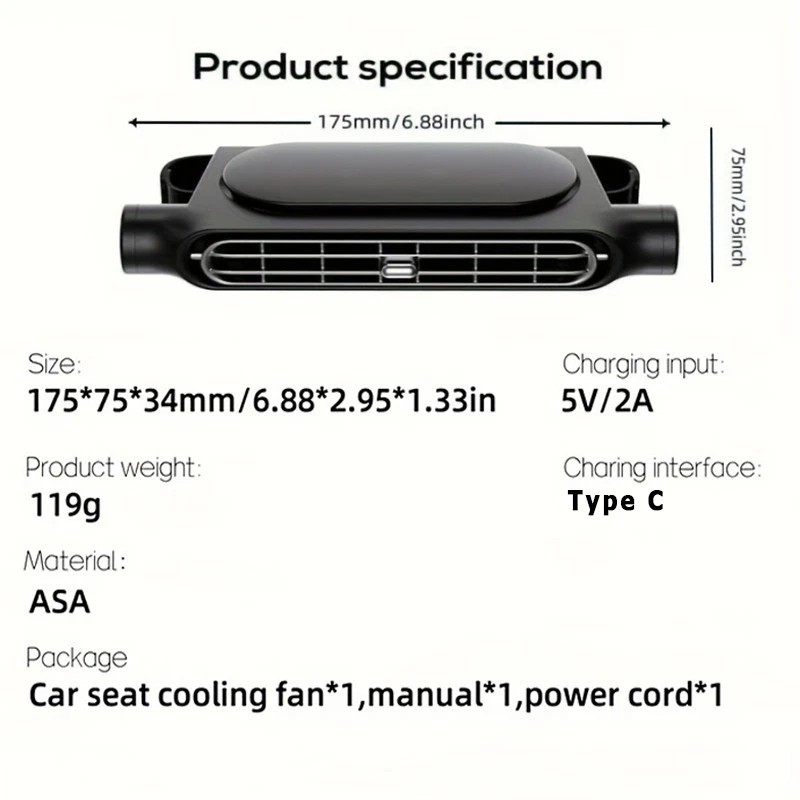 | Type : | 3-Speed Bladeless Car Cooling Fan |
