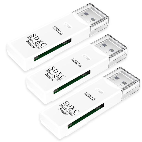 USB SD Card Reader for PC, Micro SD Card to USB Adapter, Card Reader for Camera Memory Card Reader, Wansurs Card Reader for Laptop (3 PACK USB2.0 White)
