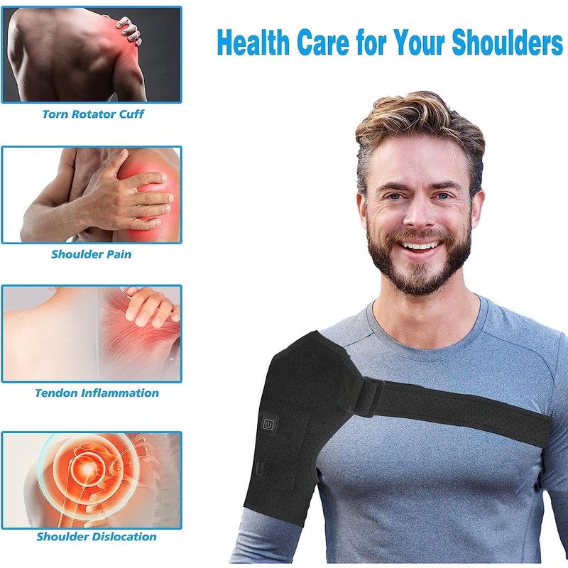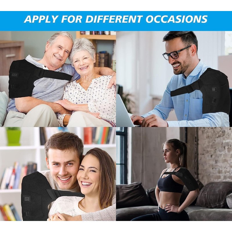 - 【Application】Built-in infrared heating pad for shoulders, Promotes blood circulation, and relieves the pain caused by shoulder frostbite, Rotator cuff tear, Sprain, Tendonitis, Strain, Stiffness and soreness. Note: Do not use directly on the skin to avoid burns. The USB cable needs to be plugged into a power source at all times when working.
