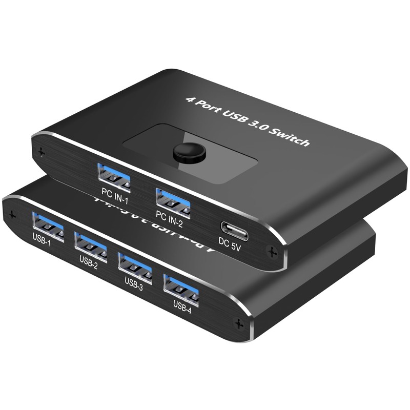 - 【2 PCS sharing 4 USB devices 】 This USB 3.0 switcher allows two computers to share four USB peripherals, such as mouse, keyboard, printer, scanner, card reader, USB flash drive, and more. It is easy to switch device connections without frequent cable insertion and removal, improving work efficiency.