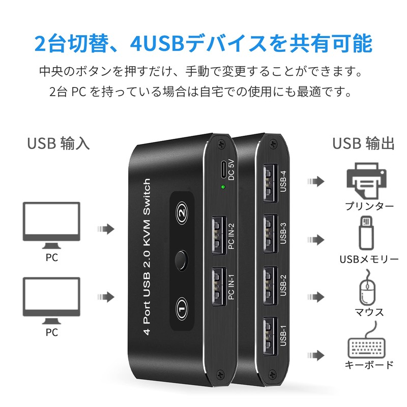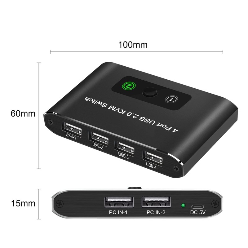 - USB Switcher for 2 PCs: A switcher that allows you to share USB devices such as a 1 set of switchers, mouse, keyboard, external hard disk, hub, and other USB devices on 2 PCs. It is compatible with both laptop and desktop computers, and can be switched easily with one button. Eliminates the need to pull cables frequently or set up complex network sharing software, which greatly improves your work efficiency