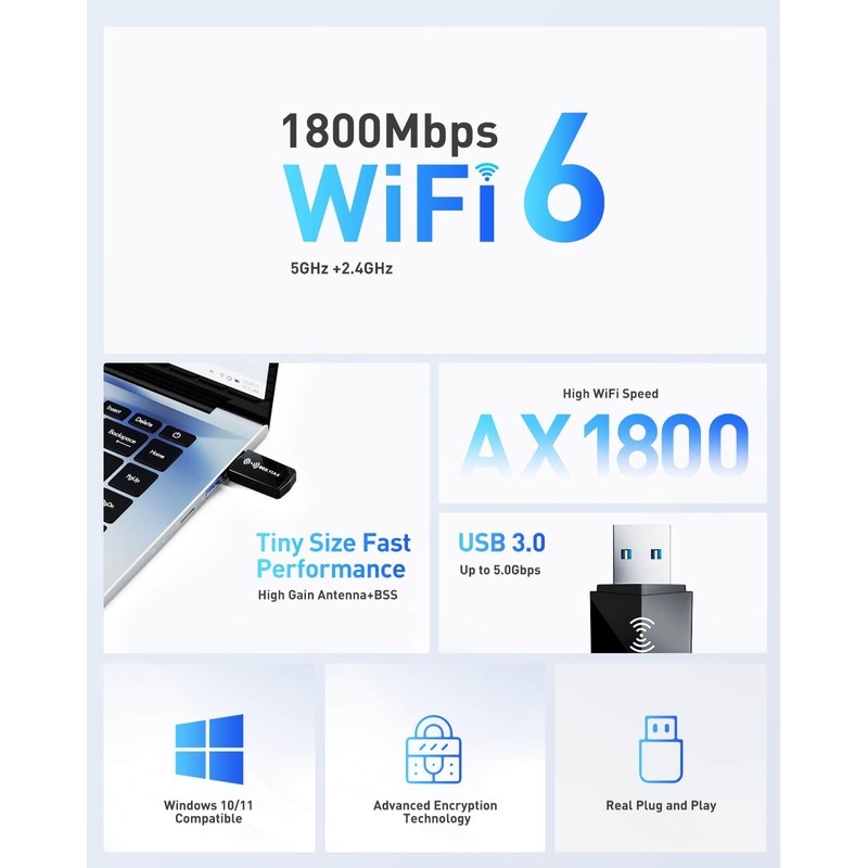 - Tiny Design USB WiFi - Avoid blocking adjacent USB interfaces,only we have 1800mbps nano pc wifi adapter,others are lower speed.With 5GHz and 2.4GHz wifi receiver getting fast wifi connection.easy for travel to get fast wifi connnections with wifi 6 network adapter wireless usb wifi adapter for pc.
