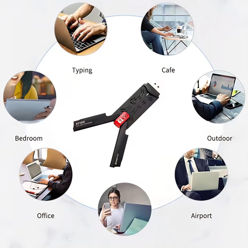 • BAND SUPPORT: Tri Band USB WiFi Adapter supports 2.4GHz, 5GHz and 6GHz bands, which automatically selects the best band according to the network environment, providing a more stable and efficient wireless connection.