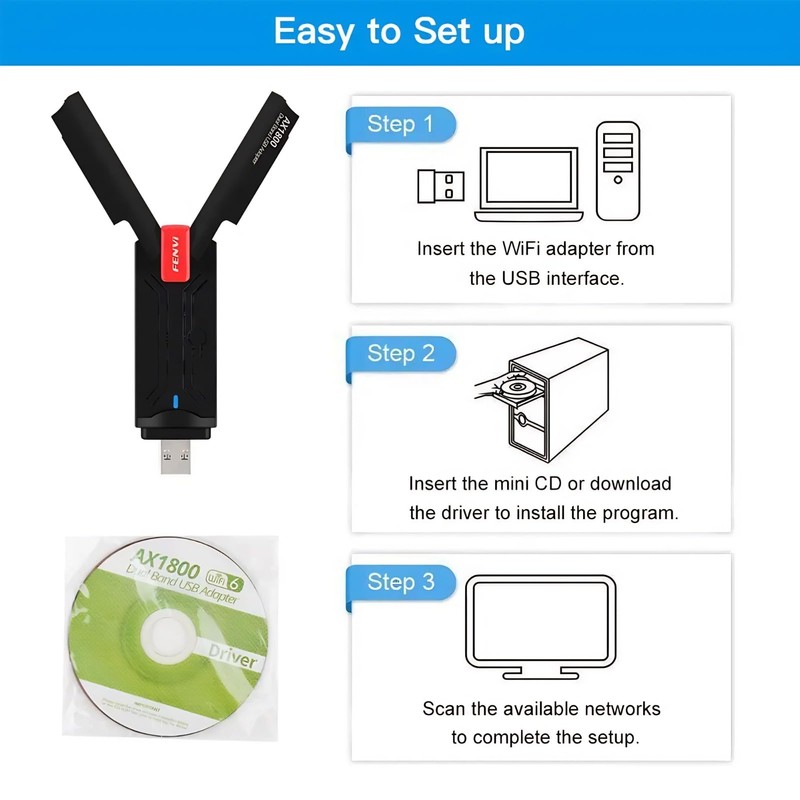 • HIGH SPEED TRANSPORT:Tri Band USB Adapter supports WiFi6E technology, providing up to 5400Mbps wireless rate, ultra high speed transport allows you to enjoy a seamless network experience.