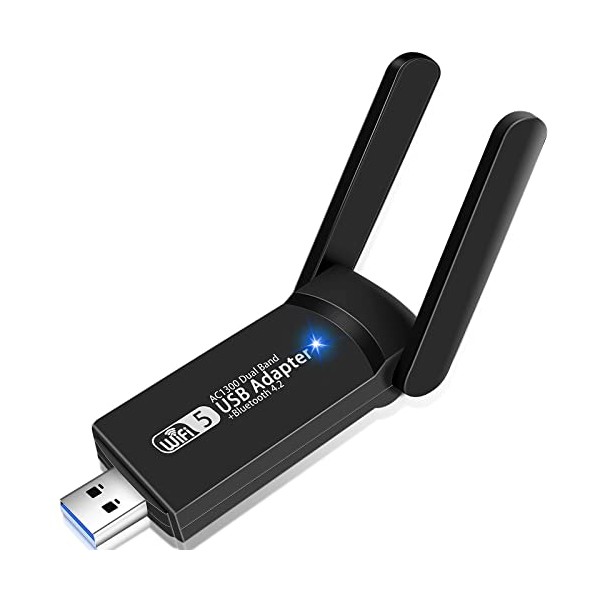 USB WiFi Bluetooth Adapter, 1300Mbps Dual Band 2.4/5Ghz Wireless Network Exte...