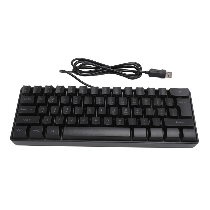 USB Wired Gaming Keyboard 60 Percent RGB Backlight 61 Keys Portable Compact Keyboard for PC Gamer Typist Black