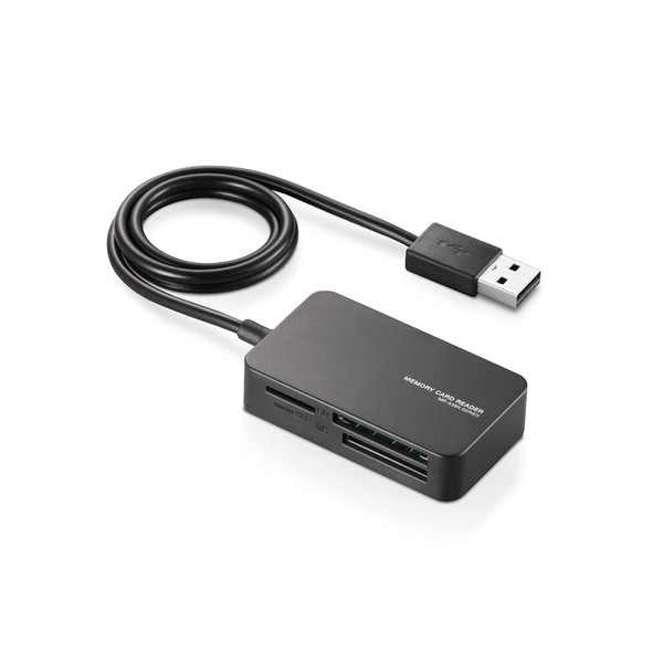 エレコム カードリーダー USB2.0 2倍速転送 ケーブル一体タイプ コンパクト設計 ブラック MR-A39NBK