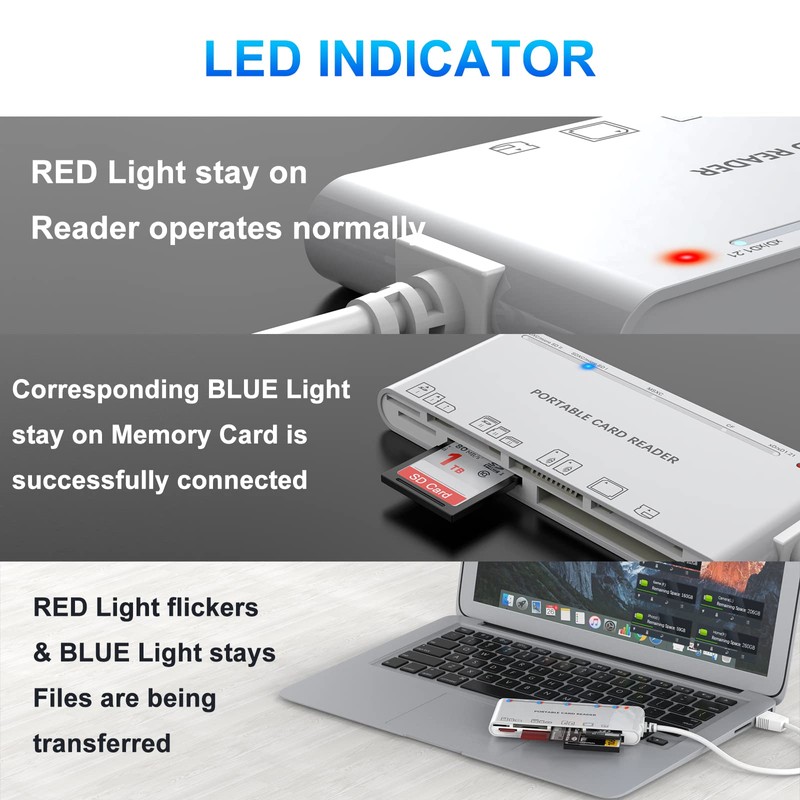 - 🌈【USB Card Reader with Built-in Aadvanced IC chip】 When the CF card reader is connected to the computer, the red light is on when a memory card is inserted, the blue light is on in the corresponding card slot, and the blue light flashes when data is being transferred.Rocketek offers an unconditional 18-month warranty,if you have any questions, please contact our friendly and easy-to-contact customer service.