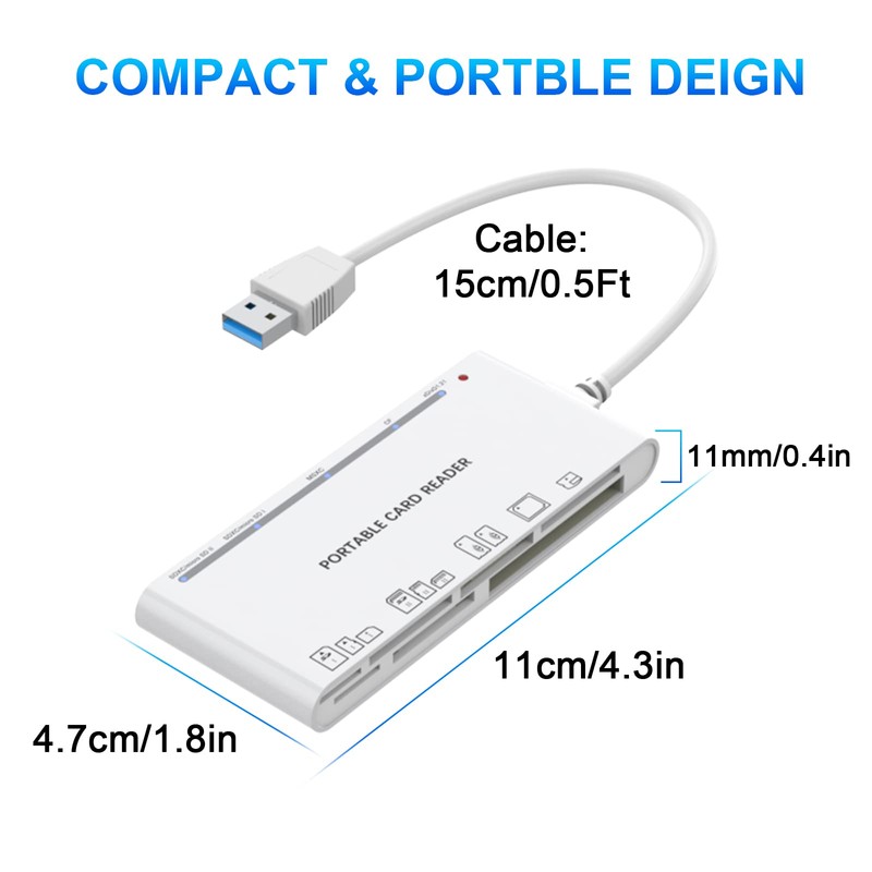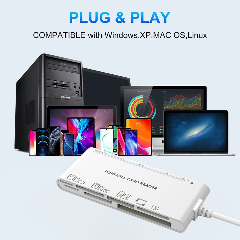 - 🌈【Comprehensive Card Compatibility】Multi memory card reader supports most standard memory cards, including SD CARD, SD/SDHC/SDXC/RS-MMC/MMC MICRO. CF CARD, CF/Compact Flash/Toshiba/Transcend. TF CARD, TF/ MS CARD, MS/Memory Stick/ MS PRO/MS PRO-HG/MS PRO DUO. XD-CARD, XD-PICTURE-CARD.