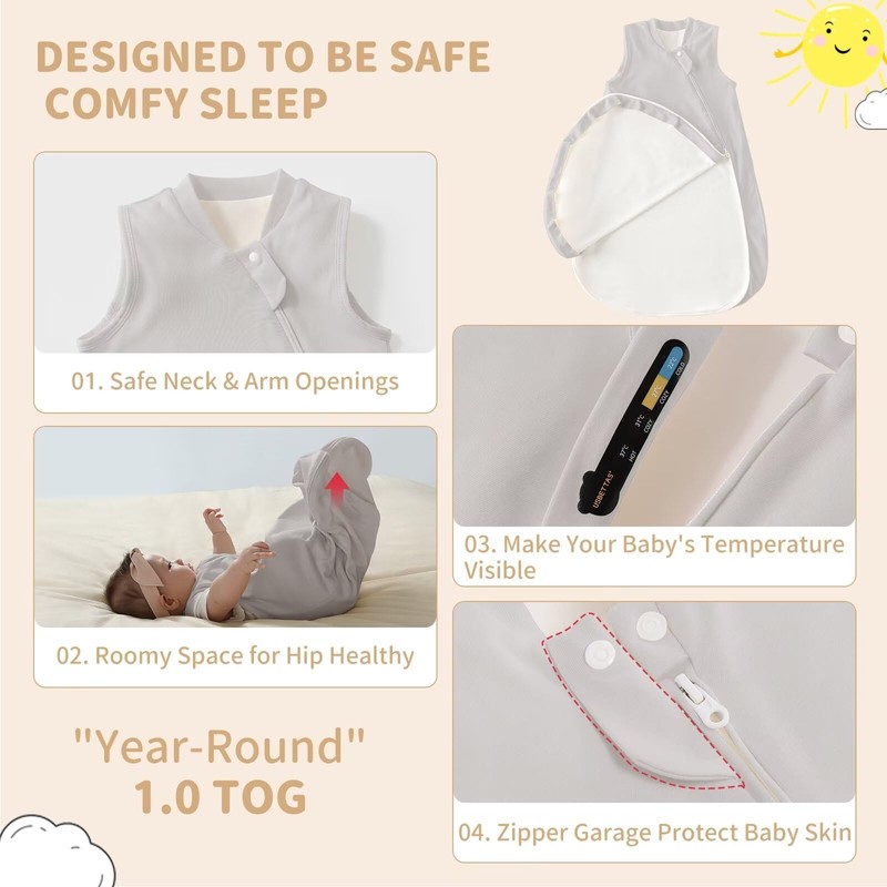 - Ideal for Baby's Sleep - Our 1.0 tog sleep sack is made from 100% cotton, which is breathable, soft, thermal regulating and moisture-wicking, helping to keep your baby comfortable and dry. Comfortable atmosphere that encourages longer and more restful sleep. Your baby sleeps better, you do too!