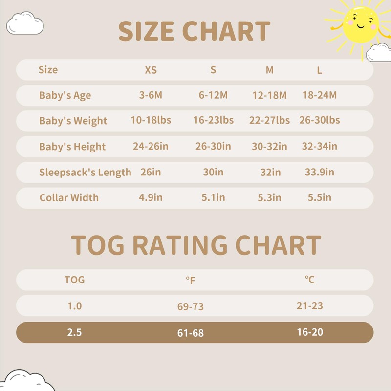 - One-Way Moisture Guide Technology: The inner layer of the sleeping bag will show a small whale pattern when absorbing sweat, which can quickly discharge sweat and keep the inner layer dry. Temperature sensing strip changes color as your baby's body temperature changes