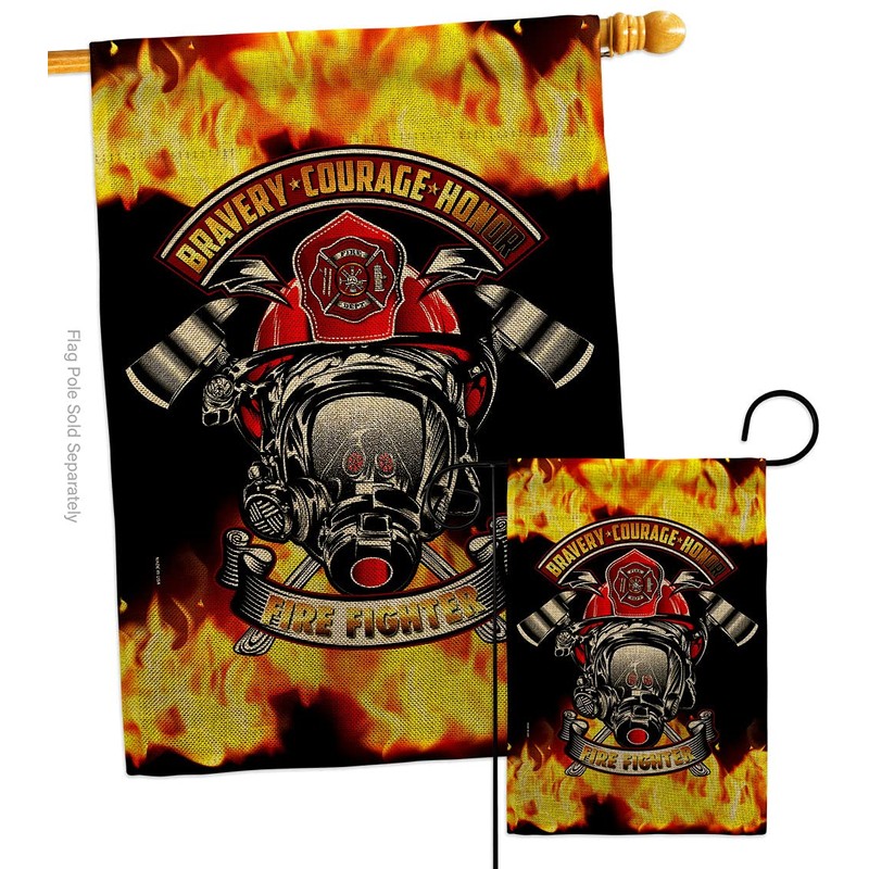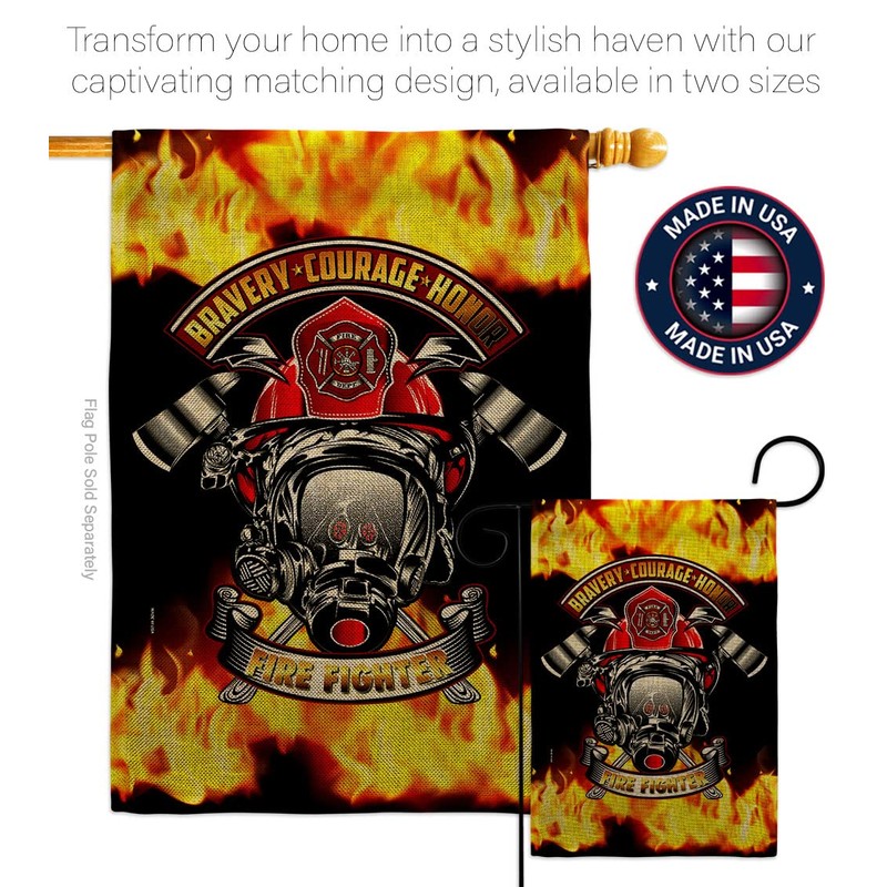 USBrotherhood Bravery Firefighter Burlap Garden House Flag-Set Armed Forces Firefrighter Fireman Fire Department Rescue Red Line Hero Support Banner Small Yard Gift Double-Sided, Made in USA