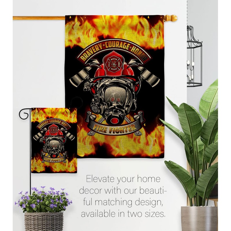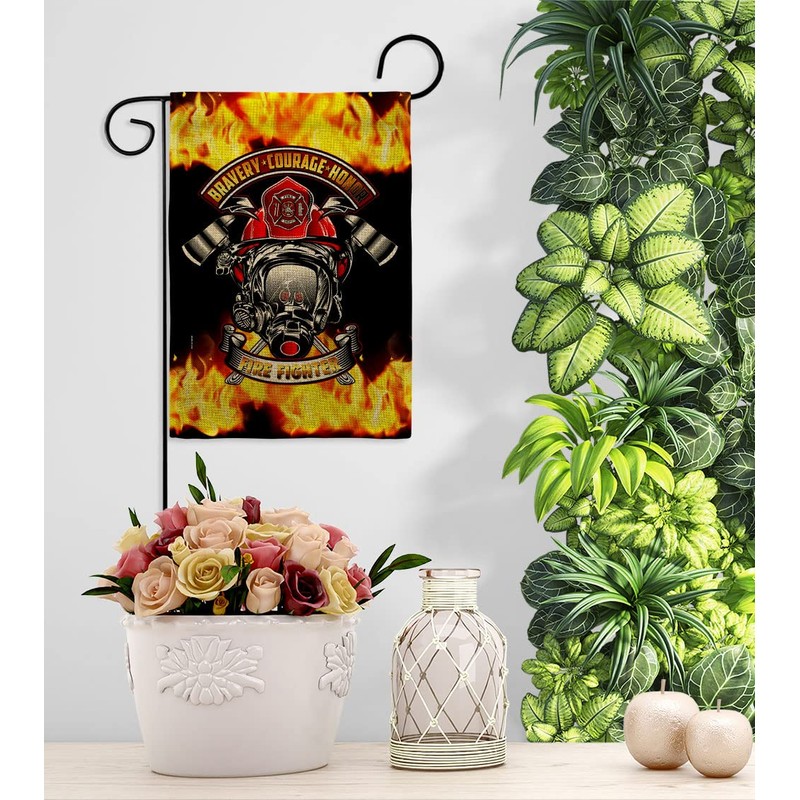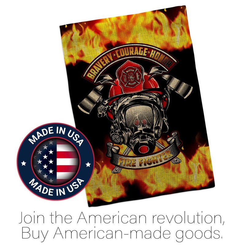 USBrotherhood Bravery Firefighter Burlap Garden House Flag-Set Armed Forces Firefrighter Fireman Fire Department Rescue Red Line Hero Support Banner Small Yard Gift Double-Sided, Made in USA
