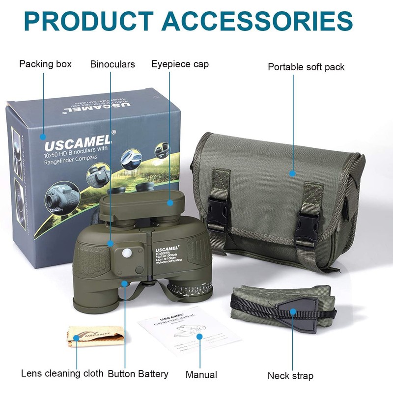 USCAMEL 10X50 Marine Binoculars for Adults with Rangefinder Compass, Waterproof Marine Binoculars for Sailing Boating Fishing