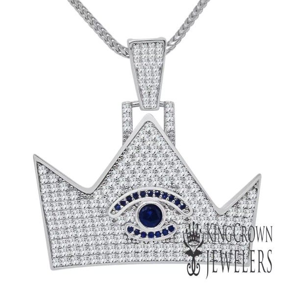 Usdiamondking Mens Real Genuine White Gold Sterling Silver Crown Evil Eye Charm Pendent Chain