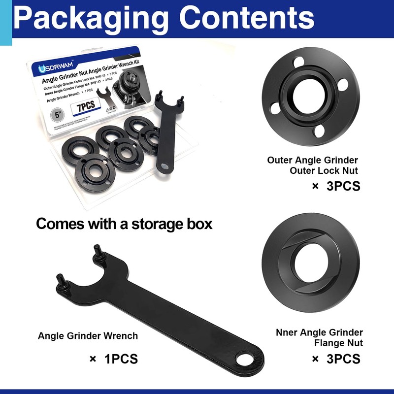 - Professional Neat: Designed for industrial use, this kit Keep everything in order with the handy storage box, ensures your angle grinder stays efficient and reliable, always at hand for quick maintenance. making routine maintenance and part replacements hassle-free.