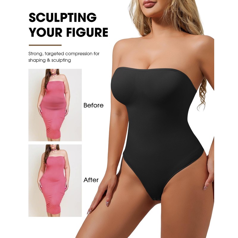 - 【Medium Level Control】This tube top bodysuit is designed to hold in your core while cinching your waist and flattening your tummy,it means that girdle tummy control body shaper.This black bodysuit strapless also features a non-compression design in the bust area to show your beautiful hourglass figure