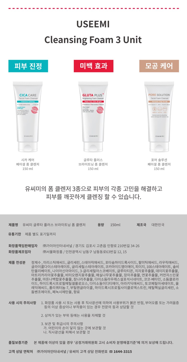 USEEMI유씨미 글루타 플러스 브라이트닝 폼 클렌저 150ml USEEMI Gluta Plus Brightening Foam Cleanser 150ml