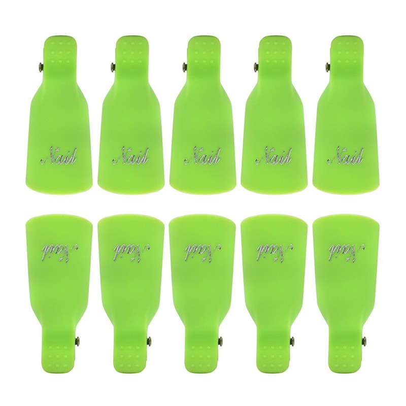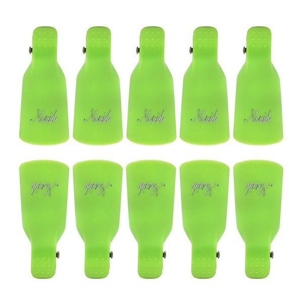Useful 10Pcs Plastic Acrylic Nail Art Soak Off Clip Cap UV Gel Polish Remover Wrap Tool (Green)