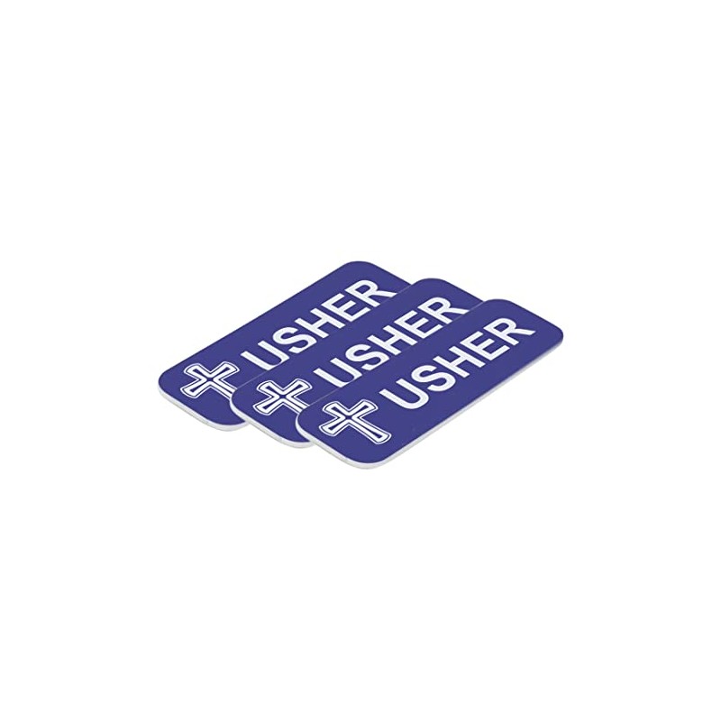 Usher 1 x 3" Name Tag/Badge, Blue, Cross Design (3 Pack)