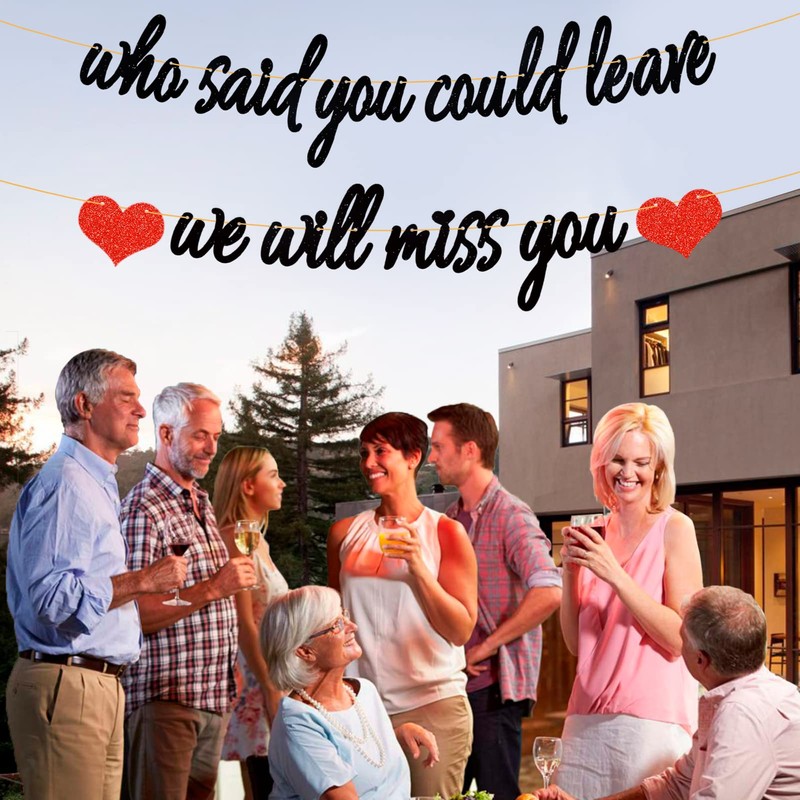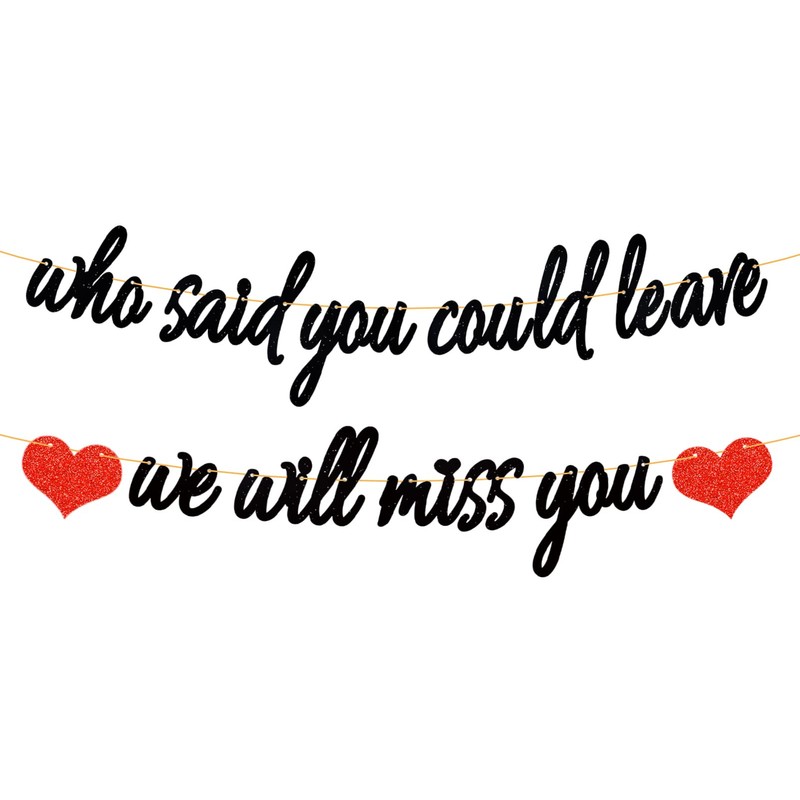 - Diseño único: este kit de pancarta con purpurina incluye quién dijo que podrías dejar pancarta, te echaremos de menos y dos corazones, es exactamente lo que estás buscando. Te causará una profunda impresión.