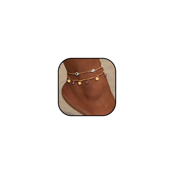 Ushiny Boho Anklet with Multiple Layers Gold Sequin Anklet Evil Eye Ankle Jewellery Beach Crystal 2 Pieces Anklet for Women and Girls