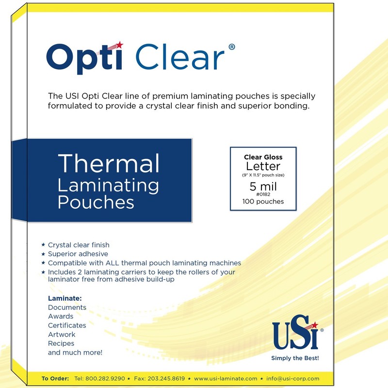 - Best-selling Opti Clear laminating pouches. FROM USI...the lamination leader since 1975!