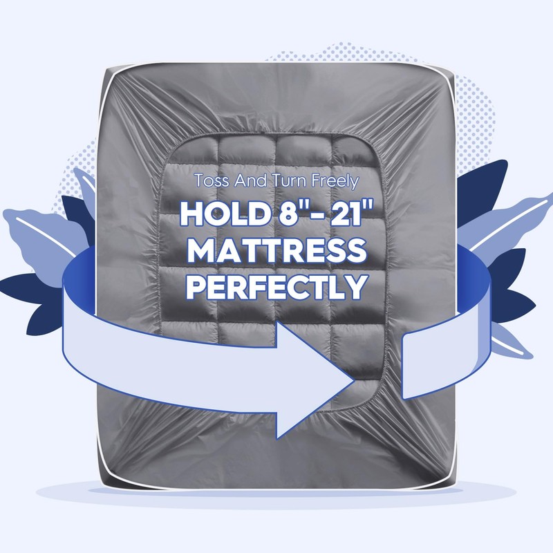 - 【8-21 INCH DEEP POCKET & ALL-ROUND PROTECTION】Equipped with an all-around elastic skirt to protect your mattress from dirt. The skirt is made of the same fabric as the mattress topper for double-sided use and increased durability. Depth of 8-21 inches, allowing you to toss and turn freely on sleepy nights. Great gifts for men and women, moms and dads, Valentine's Day - Mother's Day - Father's Day - Thanksgiving and Christmas.