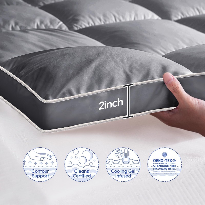 - 【EXCELLENT HAND-MADE QUALITY & MACHINE WASHABLE TIPS】Purely handmade, more delicate, and more sustainable than machine sewing. Certified STANDARD100 by OEKO-TEX with full health protection. Due to the professional compressed vacuum packaging, the mattress topper may be slightly lumpy when you first open it, which is normal, please tap hard to make the filling even and leave for 24-48 hours to let the air in to make it fully fluffed. Machine washable, gentle cycle with cold water, tumble dry low.
