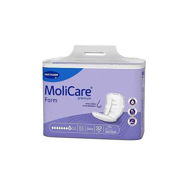 Molicare Premium Form is a pad for moderate to heavy incontinence that is shaped to fit perfectly to the body. MoliCare Premium Form features an advanced absorbent core providing fast absorption, leakage protection, skin protection, and a feeling of dryness and comfort. The soft textile-like fabric provides discretion and maximum wearing comfort. Worn with MoliCare Premium Fixpants.